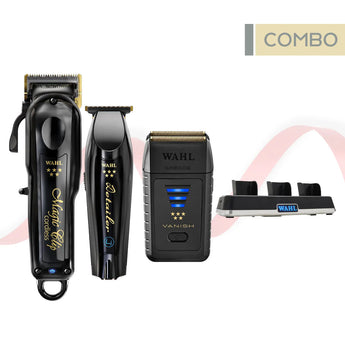 The BarberStation Essentials – Compact Combo Kit delivers professional performance in a streamlined package. It includes the 5 Star Cordless Barber Combo, featuring the Magic Clip and Detailer Li for seamless fades, precise detailing, and long-lasting cordless runtime. The 5 Star Vanish Shaver ensures ultra-smooth, irritation-free finishes with gold foils and an advanced suspension system. Completing the set, the Power Station charges up to three Wahl cordless tools simultaneously while reducing clutter with its single-cord design. With high-performance tools, cordless freedom, and organized charging, this kit provides barbers and stylists everything needed for precision, efficiency, and professional results.